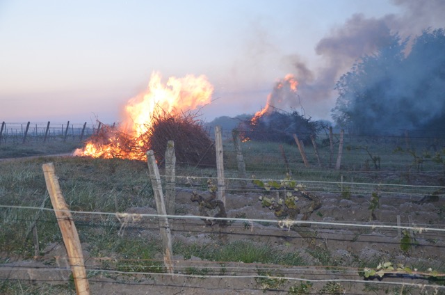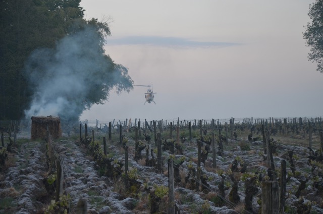 Grâce au soutien de Vendanges Solidaires, la protection contre le gel en 2017 a été mise en place par l’utilisation d’hélicoptères, couplée à des feux de paille.